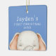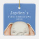 Pojke första julprydnad med en söt illustration av en elefant och en blå bakgrund. Anpassa det till namn och till år. Dubblan med samma utformning.