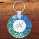 Anpassa enkelt denna vackra glatt blå faux-nyckelkedja i glitter med ditt anpassningsbar monogram och namn.