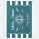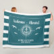 Välkommen ombord! Nautisk flottfilt som läser din anpassningsbar namn omgiven av en kompass med ett ankare på modern teal rand med fiskmåsar och ett andra redo som ska vara personlig.