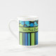 Anpassningsbar Bone China Mugg, Stripe Blue Måne M Benporslin Mugg