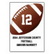 Bordsnummer av fotbollsevenemang i vitt, med en stor brun och vit fotboll i mitten, med fet vitt bordsnummer, i mitten i boll. Svart text vid grund är redot att anpassa sig till det du vill. Anpassa nummer och text, en för varje bord vid evenemanget. Bakgrunden färg kan enkelt ändras till valfritt färg i anpassningsläge.