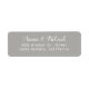 Din adress-personlig på ett enkelt sätt.. i en fin grått-etikett med två linjer text centrerad och med brud och groom namn skriven i ett snyggt-typsnitt stil