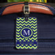 Anpassningsbar Bright Lime Green Navy Blue Chevron Bagagebricka