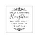 Anpassa enkelt den här anpassningsbarna Anpassningsbar Flourish Bröllop par Returadress gummi frimärke med ditt eget namn och adress. Om du vill anpassa gummimallen klickar du på "Anpassa den här frimärket" och ändrar texten i rutorna. Tillgänglig med olika färger i bläck-plattan (ingår inte) i kvadratiska storlekar 1 tum, 2 tum eller 2,5 tum eller rektangulära storlekar 1 x 2,5 tum, 1,5 x 3 tum och 4 x 5 tum med handtag eller utan handtag. OBS! Vi rekommenderar att du ser din design på bildskärmen så nära den verkliga storleka som möjligt för att se till att texten skrivs ut på förväntad storlek. Returadressen gummi frimärke är lasergraverat på skumskydd. Ingen minsta orderkvantitet.
