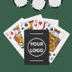Ge är din roligt-märkesswag med logotyp och webbplats eller slogan för att öka marknadsföring. Logotypen visas i mitten med en svart bakgrund med texten vit ovanför och nedanför. Den övre texten är uppochnedåt så att den kan läsas när spelkorten roteras. Ersätt exempeltexten med logotypen i sidlisten. Den här utformningen fungerar bäst med logotyper som ser bra mot mörkens bakgrund. Om du vill ändra den svarta bakgrunden färg markerar du bakgrunden och väljer färg i sidlisten genom att klicka och anpassa den ytterligare. Klicka sedan på "klart" för att köpa det anpassade objektet. Se fler objekt som du kan lägga till logotypen i samlingen Rocklawn Arts.