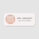 Modern minimalistisk namn bricka-mall för att lägga till din logotyp, medarbetarens namn och nuvarande befattning eller bara företaget namn. Anpassa den använda typsnitten och bakgrundsbilden färg som är vit med designen verktyg för att matcha färger.
