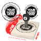 Skapa din egen Personlig Business Logotyp Large Rubber Frimärke som enkelt lägger till din logotyp (rund för bästa resultat) i dubblan Circle bläck gräns och två personliger (Business namn, webbplats, social nätverk, returadress, kontaktinformation eller bara ett sött tack till dina kunder) i ett vackert skrivteckensnitt med vintage. Lämna det här grymma och snyggt-typsnittet eller välj mellan en stor mängd stilar: dekorativ, symboler, modern och minimal sans serif för en professionell estetisk, handskript för elegant, barnslig och söt, klassisk chic serif med mera. Den stora logotypen gummi frimärke är en underbar presentidé för att skapar burk-etiketter, emballering och emballering som är pappra för handgjorda konstverk med mera. Logotypen anpassningsbar frimärke finns tillgänglig med eller utan handtag, i små, medelstora, stora och stora storlekar, och dynorna i bläck finns i vilken färg som helst. Ingen minimiorder.