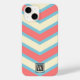Vackra mjuka anpassningsbar med ett mesmeriserande chevron mönster i en fängslande blandning av pastellorange/lax/koral, beige och cyan färg. Denna nostalgiska utformning utstrålar en känsla av roligt, återtro och ungdomlig exuberans, skapar den som ett perfekt medbrottsling för alla som kärlek fet påstående och unikt stil. Anpassa fodral med ditt monogram i ett snyggt- och contemporary-teckensnitt och skapa ett äkta tillbehör som återspeglar din individualitet och oklanderliga smak. Oavsett om du är en trendsättare, på modet, eller bara söker efter ett sätt att tillföra en färgstark retro till ditt vardagsliv, är fodral i anpassningsbar säker på att höja stil och göra ett bestående intryck. För alla Apple iPhone-modeller och vissa Samsung Galaxy smartphone-telefoner.
