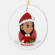 Julprydnad med en illustration av en söt, leende lycklig-flicka med långt svart hår, hon bär röd och vit Jultomten-dräkt och håller en present. Med redigerbar textmall för ditt namn eller meddelande utformar helgdagar för jul