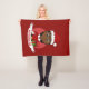 Filt med en illustration av en söt, leende svart flicka i lycklig med kort hår, hon bär röd och vit Jultomten-dräkt och håller en present; med redigerbar textmall för ditt namn eller meddelande, juldesign med röd bakgrund och helgdagar med röd bakgrund