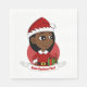 Napkins med en illustration av en söt smilande svart flicka i lycklig med långt hår, hon bär röd och vit Jultomten kostym och håller en present; med redigerbar textmall för ditt namn eller meddelande, juldesign med röd helgdagar