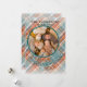 Unikt, klassiskt, söt och dekorativt hälsningskort för Julhelg. Med roligt vill Happy thanksgiving på en mysigt, varm färgstark tårblått och orange röd färgad plaid tartan mönster. Med plats att anpassa eller anpassa med ditt eget beundransvärda foto och med familjen namn på kortets framsida, och en anpassade säsong hälsning dikt på kortets baksida med möjlighet för familjemedlemmen namn.