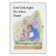 Ett hälsningskort "Lycka till på New School" med en liten mus som lämnar Mousehålskamrat för att starta första dagen i skolan. Detta mönster kommer från en handmålad vattenfärgsillustration av Judy Adamson. Du kan anpassa ytterhöljet och det inre meddelandet.