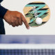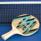 Snyggt bord-tennis-paddle-personlig med sitt namn och efternamn i stilar med coola, över en bakgrund med en bild av träkorn, och stort överdimensionerat brev med skuggor.. en modern monogrammad utformning, med snyggtens namn.