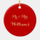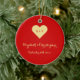 Anpassningsbar, personlig, vacker, elegant, faux golden typography / script, bride & groom, make & fru, bröllop / årsdag keepsaké ceramic porcelain ornament med ett band av guld-tråd för att hänga den. Om du vill anpassa dig skriver du namn i brud & groom/make & fru, datum för bröllop, initialer för paret och familjens namn / efternamn för brud & groom / make & fru. Gör en underbar gåva till bruden och brudgummen, nygifta, par, för bröllop, årsdag, möhippa och så vidare.