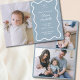 Anpassningsbarna Dusty Blue Bow Vågigt Boho Collage Baby Birth Annocement Card är modernt och minimalistiskt. Det fullständiga anpassadet-kortet innehåller ett lodrät på framsidan med ditt baby namn, födelsestatus och förälder namn. Baksidan visar en 3-fotokollage. Perfekt för att dela din glädje är den här minimalistiska coquette-designen idealisk för gender-neutralt-meddelanden i baby. Gratulera till det nyfödda med det här enkla och elegant annonskortet.