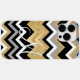 Contemporary vit, svart och faux shiny guld glitter chevron zig zag rand mönster. Med utrymme att anpassa eller anpassa med ett monogram eller en början av ditt val. Vackra, moderna och coola som täckmantel för den trenderande och konstnärliga höftledaren, artsy motif älskare som vill skydda sin mobila från damm och smuts, bära och tårar. Den här designen finns i Apple iPhone 6, 7, 8, 10 eller X, XR, XS, 11, 12, 13 Mini, 14, 15 Plus och Pro Max-caseser för mobiltelefoner. Visa av stil, se modernt trendig och känn snyggt med en unik design på ett mobilt enhetstillbehör som du vill ha.