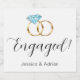 De här anpassningsbarna med vin-etiketter säger Engaged! tillsammans med ett par av guld-strandade blått diamant förlovning ringar, och bruden och groomerna namn. Perfekt för en förlovningsfest!
