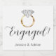 De här anpassningsbarna med vin-etiketter säger Engaged! tillsammans med en guld-banderad vit diamant förlovning ring och bruden och groomerna namn på grund. Perfekt för en förlovningsfest!