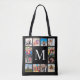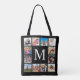 Skapa din egen personlig 12-fotokollage, till väskan med anpassningsbar bilder på en enkel modern svart bakgrund. Den tote väskan ansikte har också ditt monogram. Lägg till dina favoritfoton, symboler eller teckningar om du vill skapa något unikt verkligen.