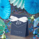 Ställe dina bröllopsfavoriter i de här enkla, chic lådorna avslutat med ett vitt band. De blå rutorna i flottan har initialerna i vit text, gått med med ett överdimensionerat skript för kalligrafi för att skapa en elegant monogramdesign. Anpassa med datum eller textval för namn och bröllop. Om du vill anpassa för att matcha färgerna i bröllop markerar du "klicka för att anpassa ytterligare" och väljer en ny bakgrund för färg.