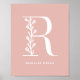 Anpassningsbar Färg Blommigt Monogram Brev R Namn Poster