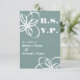 Modern bröllop OSA kort med anpassadets bakgrund färg. Vittext och blomillustrationer. Sök efter matchande inbjudningar på Jill's Paperie.com.