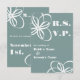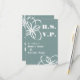 Modern bröllop OSA kort med anpassadets bakgrund färg. Vittext och blomillustrationer. Sök efter matchande inbjudningar på Jill's Paperie.com.