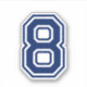 Nummer åtta dekal. Sports College-typsnitt, vilken anpassningsbar som helst färg. Du kan ändra färg i numret med hjälp av verktyg. Det fullständiga alfabetet och siffrorna 0-9 finns tillgängliga.