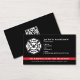Den här utformningen har ett tema för brandbekämpning med en tunn röd flagga rand. Anpassa till namn, placering och kontaktuppgifter för brandkår, kapten, chef eller annan anställd som arbetar på brandavdelningen. Har en QR-kod på baksidan för att lägga till webbplatsen.