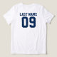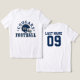 Anpassningsbar Front and Back Football T-Shirt for Mamma - som visas i White Design for Football mammor har en fotbollshjälm med sporttext som kan anpassas för laget namn, sonens efternamn och hans jersey-nummer. Guld och marinblått färg kan anpassas.
