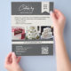 Visa din tårtstudio med elegans och stil. Denna professionellt designade flygare är perfekt för avancerade bagerier, kakaokonstnärer och boutique dessert-studios. Anpassa den med dina tre bilder för att få bästa möjliga anpassningsbar, lägga till ditt företag namn, kontaktuppgifter och en tagg som återspeglar ditt varumärke. Innehåller utrymme för en QR-kod så att klienter enkelt kan använda bok och möte, komma åt webbplatsen, orderformuläret eller social-media. Perfekt för konfektionsdesigners i bröllop, firande-kakor och moderna kakaföretag som värdesätter kvalitet, design och detaljer.