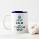 Gör ditt eget unika Behåll lugn och fortsätt citat med vår lättåtkomliga använda mugg-mall. Tryck på "anpassa" om du vill redigera texten till valfri fras. Tryck på 'anpassa ytterligare' för att justera krona och teckensnittet färg.