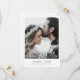 Den här platta bröllop spara datum-fotokortmallen med chic har en ren, modern utformning med skript för elegant i vitt över den nedre delen av fotot. Vi har lagt till ett graderat lagrar vid grund för att förbättra detta "Spara datum"-inslag i kortets utformning, så att det blir tydligare. Det slutliga utseendet beror på vilket foto du väljer och hur mycket kontrasten är mellan färg vid grund på fotot och detta vita skript. Vi har valt en elegant mörk grått-ton för namn på framsidan, men det finns många andra färger som du kan välja genom att ange numret på ett färg som du vill från din forskning eller genom att helt enkelt välja ett annat färg genom att se det i verktygen. Vi har valt en annan grått-ton för datum- och lokaliseringsinformationen på kortets framsida under namn, och du kan också enkelt ändra det färg, till svart om du t.ex. föredrar eller någon annan ton. Du kan naturligtvis också ändra +-symbolen mellan namn till "och" eller en annan symbol om du vill, eller ändra teckensnittet för texten med din information. Bakgrunden på baksidan är inställd så genomskinlig att färg på din pappra kan bli färg, men du kan ändra det och välja ett färg som kostym din stil om du vill. Du kan också ändra flera aspekter av formgivningen på baksidan, till exempel ändra färg till något annat än de grått-toner vi har valt, ändra teckensnitt, ändra innehållen i fält, osv. Kom ihåg att ta bort alla våra exempeluppgifter och bilder i fodral! Anpassa den här designen med den intuitiva verktygen och din inspiration och gör den unik för dig. Och kolla i vår butik för att se en vykortsversion av den här designen och många andra snyggtar av modern Spara datumkorten!