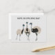 Meddelandet på framsidan av detta vykort kan anpassas med ditt eget hälsning. Texten visas ovanför realistiska illustrationer av tre emus i stil. Baksidan av detta vykort är tom så att du kan göra skrivor i ditt eget meddelande.
