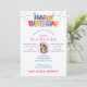 Cute Fotofärgat inbjudningskort på födelsedagen. Gör din lilla flickas första födelsedag extra söt med vår inbjudan till Roligt! Den här charmerande inbjudan, som brinner med ljusa färger och foto, anger tonen för ett glatt firande. Dina gäster kommer att kärlek det färgstarka temat och den personliga beröringen hos din lilla leende ansikte. Det är lätt att anpassa och garantera att man kan ta med sig leenden, det är perfektens sätt att sparka av en minnesvärd första födelsedag. Redo att sätta igång party? Anpassa din inbjudan i dag med ditt barns foto- och party-information. Låt födelsedagsmagin börja! Copyright Bubblegum Hon-Nanigans LLC.