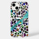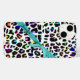 Girly iPhone-hölje med grafik av ett nyktert färgstarkt jaguar-utskriften mönster. Grafik av ett turkos-dubbla-band som är bundet i en knut, springa diagonalt över höljet. Anpassa den svarta texten, för dig själv eller som en underbar presentidé.