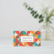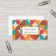 Gör ett djärvt första intryck med det anpassningsbar affärskortet som har en modern abstrakt mönster i mitten av århundradet med halvcirklar i pulserande orange, rött, teal och brunt. Den här geometriska layouten inspireras av retro 1950-talets design och lägger till en snyggt, kreativ kant, till din professionell-identitet. Du kan ändra namn och information med hjälp av personanpassa-knapp