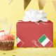 Helgdag för Buon Natale beställnings- slående in papper för italiensk flaggajul. Rolig mönsterdesign med beställnings- säsong hälsning eller önskemål. Flagga av italiendesignen. Beställnings- röd bakgrundsfärg. För barn och vuxen för Tricolore gåvasjal. Tillfoga ditt egna namn och julaftonmeddelande. Skapa giftwrap för son, dotter, sondotter, sonson, barnbarn, brorson och andra barn. God julwrappingpaper för presenter och party favors.