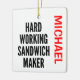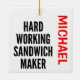 Det här är en unik dekoration som innehåller citatet "Hard working Sandwich Maker", perfekt för varje hårt arbetande smörgåstillverkare.