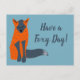 Det här vykortet är redot som ska anpassas med ditt eget hälsning i grått-skript för kol mot en ljusblå bakgrund bredvid foxbilden. Det här vykortet för anpassningsbar innehåller en illustration av ett melanistiskt räv. Den här rödräven har plåster av mörk färgad päls. Den här handritade illustrationen av stil i orange och kol-grått skildrar en räv vars färgavvikelser i päls gör att den bara blir lite svalare än din genomsnitträv.