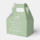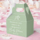 Den här chicen har en enkel dysterduschförmånslåda med grönt för spädbarn med liten vit typografi under en leksak mobil för pojke eller flicka. Elegant könsneutrala babyduschboxar för en förväntad mor.