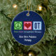 Fredsbehandlande julprydnad vid arbetslivet i Kärlek monogrammerade med er egen text för en barnterapeut. En söt OT-gåva med ditt vackra monogram i blått.