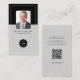 Professionell elegant svart och grått-lodrät-fotokortmall med din QR-kod (genereras automatiskt med din länk), anpassningsbarnas företagslogotyp, medarbetarfoto och dina uppgifter. +++++++++++++ Enkel att anpassa på båda sidor. (+++++++++++) Lämpligt för anställda vid verkliga gods agent, konsulter, juridiska rådgivare, advokater och andra anställda inom professionellen.