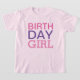 Anpassningsbarnas "Birthday Girl"-skjorta har modern textdesign i skuggor av rosa och lila. Anpassa texten med ditt barns åldersnummer på baksidan. Färg kan alla anpassas.