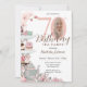 Anpassningsbar för tea Party 70:e födelsedag Rosa Blommigt - fotomedbjudan. Den här fina designen fångar elegansens och firande. Med en charmerande vattenfärgsmotiv i rosans nyanser, försedd med delikata tekannor, tekopp och dekanterbara deserter, sätter den perfektens ambitioner för en milstolpe firande. Vare sig du firar en milstolpe-födelsedag eller bara är värd för en vismisk te-samling för att hedra någon speciell, kommer inbjudan att transportera dina gäster till en värld av teinfusad glädje, skapar födelsedagsfirandet helt oförglömligt. Det är dags att blåsa lite upphetsning och skapa minnen som kommer att blomstra för alltid.