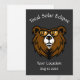 Coola Total solcellsdesign - texten på kortet kan anpassas till kostym. Utformningen har en moderiktig björn som är redo att bevittna festen genom att bära förtäckta glasögon. Förkortningen är synlig i reflektionen av glasögonen.