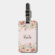 Anpassningsbar-designad bagagetagg i monogram med personlig i monogram på en lukrativ blommigt i vattenfärg på framsidan, redigerbar kontaktinformation på baksidan.