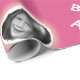 Ett omslagspapper för rosa av roligt där du kan lägga till ett foto av anpassningsbarna och ett eget hälsning. Fotot visas inuti en vit linje. Texten är antingen vit eller mycket lätt grått/silver. Text och foton kan enkelt anpassas. Du kan också redigera textteckensnitt, storlekt och färg.
