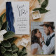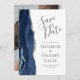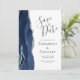 Den här eleganten är modern när du sparar datumkortet med en marinblå vattenfärgsagat gräns som trimmas med faux silver glitter. Anpassadet är grått av kol mot vit bakgrund. Byt enkelt ut exempelbilden på baksidan mot ett lodrät av framtida brud och triom.